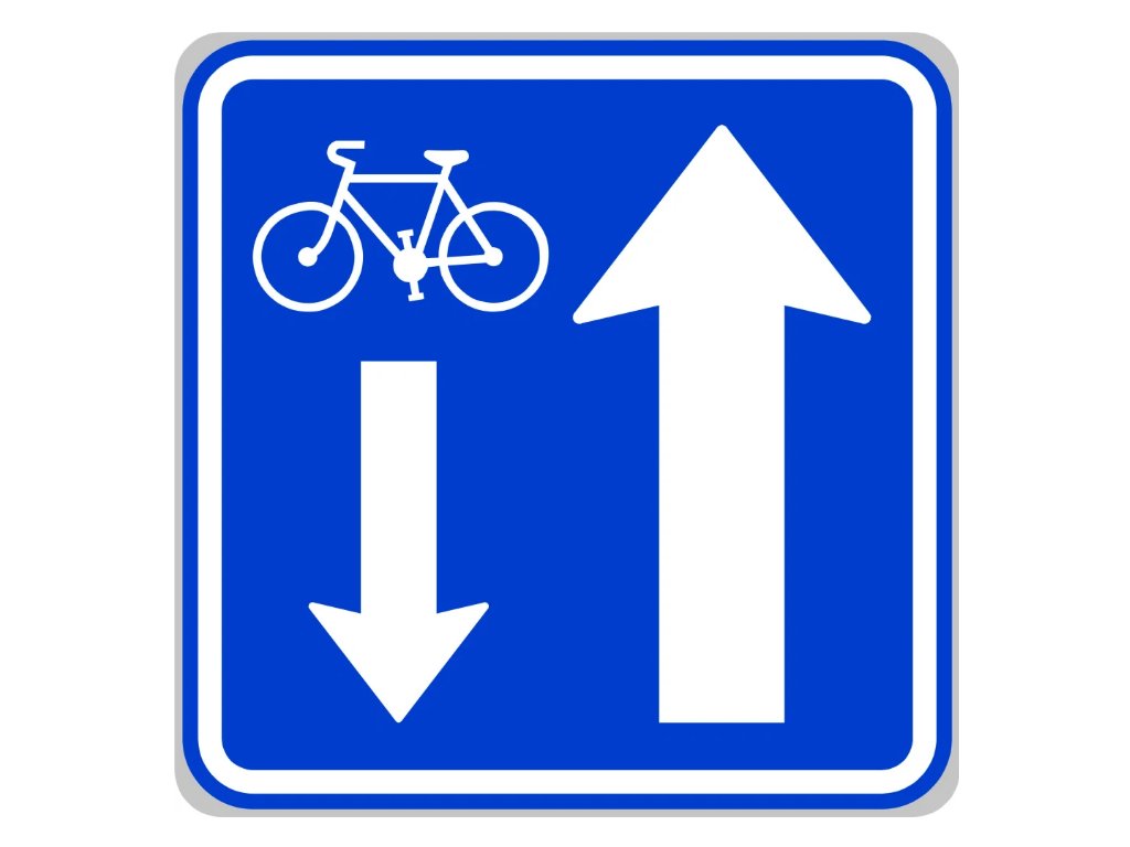 Dopravní značka IP4c - Jednosměrný provoz s povoleným provozem cyklistů v protisměru